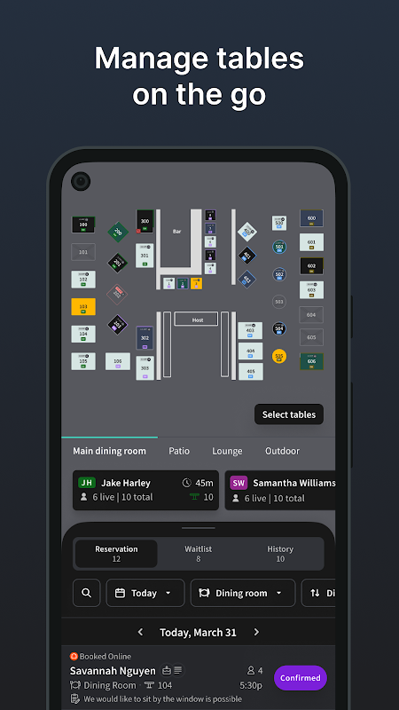 2. उपलब्धता का अनुमान लगाएं और सीधे पीओएस से वास्तविक समय, स्वचालित टेबल स्थिति अपडेट के साथ तालिका को चालू करें