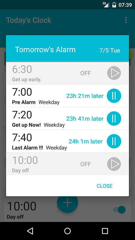 इस अलार्म आवेदन की विशेषता यह है कि आप अस्थायी रूप से आज और कल के एक अलार्म की सेटिंग को बदलने में सक्षम हो जाता है।