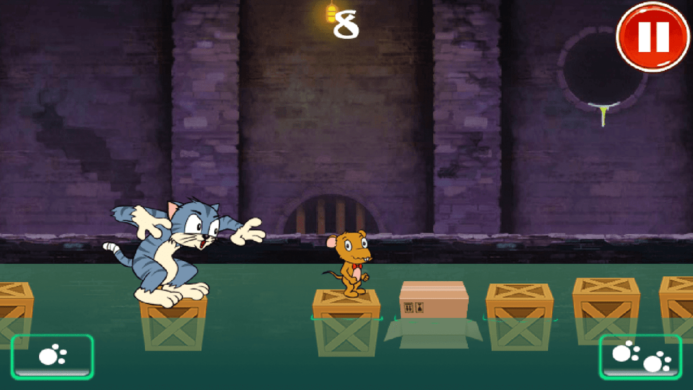 The war between the cat and the mouse occurs in the culvert system. There is a lot of obstacles, these will make them moving slower. Your task is jump "one step" or "two steps" to move as fast as possible but your mistake will be the ending of the mouse.