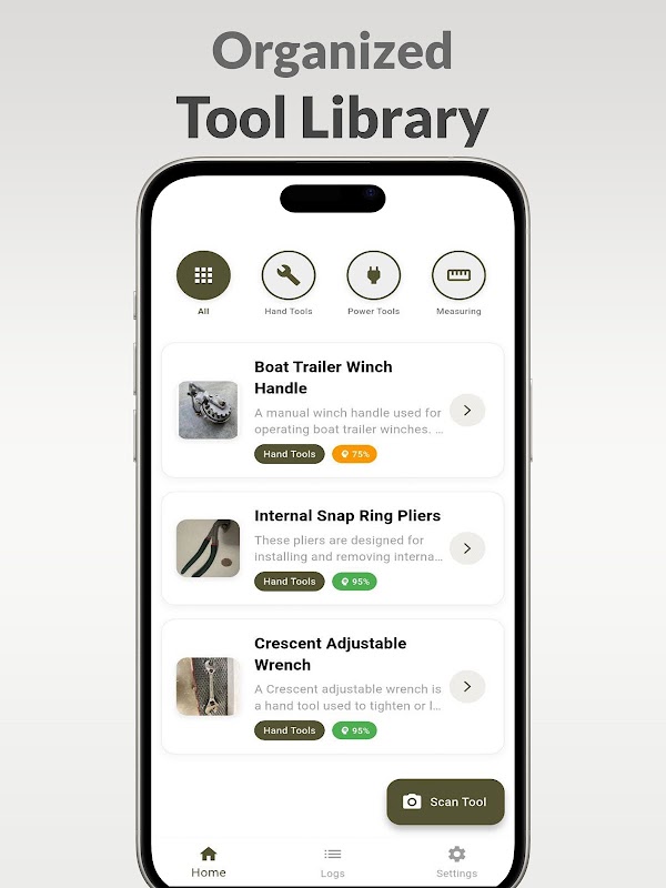 व्यापक टूल डेटाबेस - सामान्य हथौड़ों और स्क्रूड्राइवरों से लेकर दुर्लभ विशेष औज़ारों तक, विस्तृत जानकारी कभी भी प्राप्त करें।