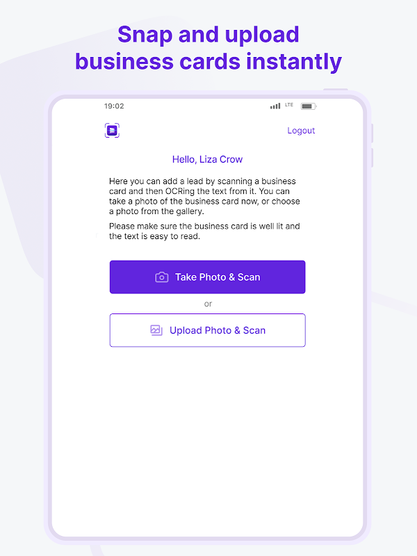 व्यवसाय कार्डों को तुरंत मूल्यवान लीड में बदलें। स्कैन करें, संपादित करें, आसानी से भेजें।