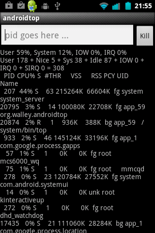 Frontend for android top. Newer android versions prevent top from showing anything but itself.
