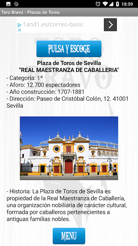 टोरो ब्रावो + पहला एप्लिकेशन है जो हमें बहादुर बैल दिखाता है।