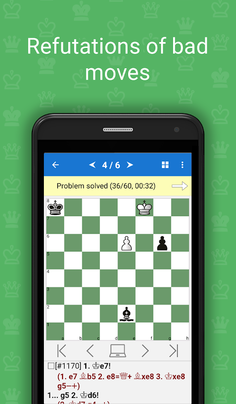 ♔ आप ऐप को एक निःशुल्क शतरंज किंग खाते से लिंक कर सकते हैं और एक ही समय में एंड्रॉइड, आईओएस और वेब पर कई उपकरणों से एक कोर्स हल कर सकते हैं