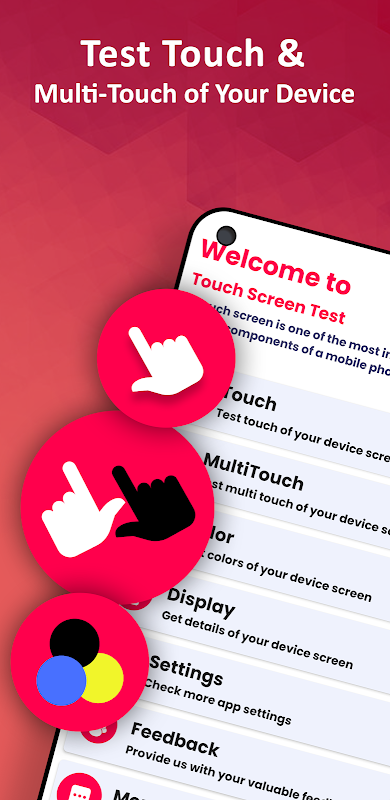 यह उपकरण उपयोगकर्ताओं को एक ही चंक के साथ बातचीत करने या पूरी स्क्रीन पर उंगलियों को खींचने और स्थानांतरित करने की अनुमति देता है, जिन हिस्सों को छुआ जाता है उन्हें हरे रंग से हाइलाइट किया जाता है। अंत में अगर पूरी स्क्रीन को हरे रंग से हाईलाइट किया जाता है तो इसका मतलब है कि टच टेस्ट पास हो गया है और अगर यूजर के टच करने पर भी कोई चंक हाईलाइट नहीं कर पाता है तो इसका मतलब है कि आपके मोबाइल के टच पैनल का वह हिस्सा या हिस्सा या टैबलेट डिवाइस काम नहीं कर रहा है या उपयोगकर्ता की कार्रवाई का जवाब नहीं दे रहा है।