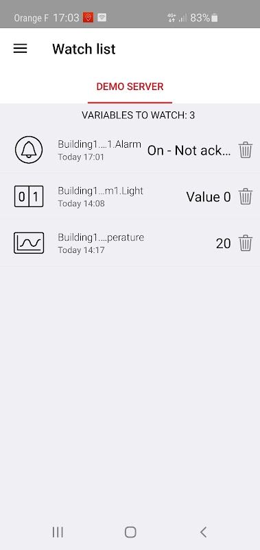 TouchVue बिना किसी अतिरिक्त विकास के सभी इंटरफ़ेस और सुविधाओं को एम्बेड करता है। आपको बस PcVue सर्वर से कनेक्ट करना होगा और आपको सूचनाएं, मान और नियंत्रण प्राप्त होंगे।
