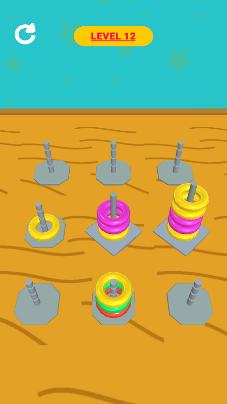 Stack the colored rings to 3 on top of each other to ensure the victory of the tower! This is a fun and colorful ring game for young and old where you can stack rings and conquer towers.
