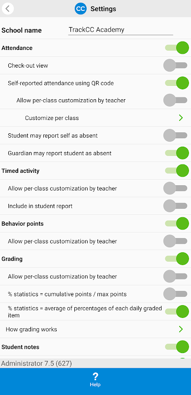 - प्रति कक्षा ग्रेडिंग विषयों को अनुकूलित करें