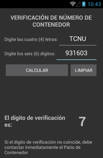 Tracking Container permite calcular el dígito de verificación de un contenedor.
