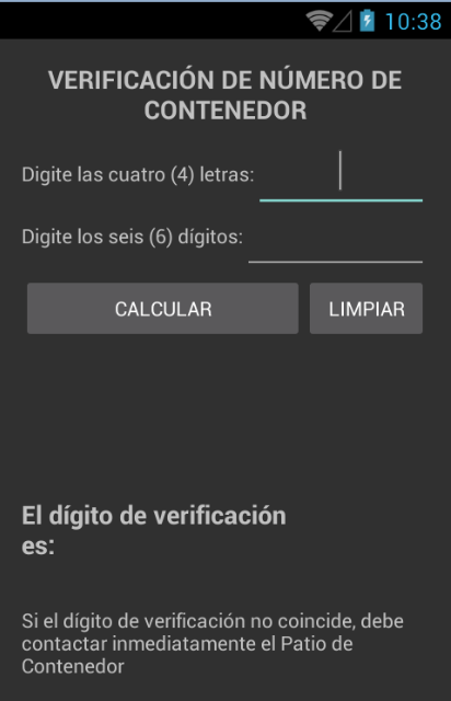 Sólo debes ingresar las cuatro letras y los seis digitos del contenedor y Tracking Container calculará el dígito de verificación del contenedor.