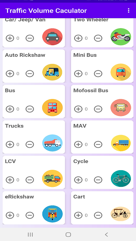 आप देख सकते हैं कि छवियों के साथ विभिन्न प्रकार के वाहन प्रदान किए जाते हैं। आप अपनी सड़क से गुजरने वाले वाहनों की संख्या बढ़ा या घटा सकते हैं।