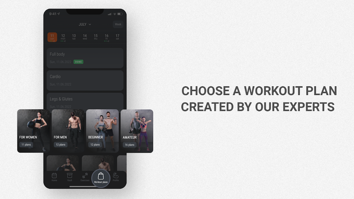एक तैयार कसरत कार्यक्रम चुनें या 500+ अभ्यासों की लाइब्रेरी का उपयोग करके अपना खुद का बनाएं। अपने वर्कआउट की योजना बनाएं और अपनी प्रगति को एक डायरी में ट्रैक करें। सर्वोत्तम परिणाम प्राप्त करें!