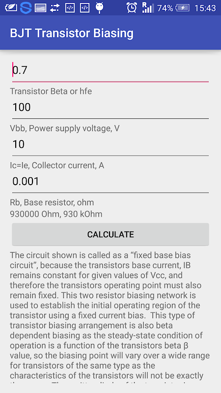 App आपको BJT ट्रांजिस्टर के biasing गणना करने में मदद करने के लिए
