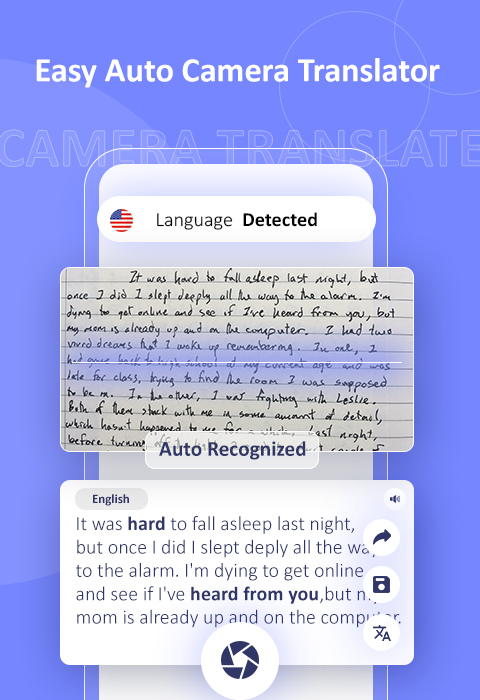 ओसीआर रीडर और ट्रांसलेटर का उपयोग करके दस्तावेजों को स्वचालित रूप से पढ़ना और आपको पैराग्राफ में दिखाना, बस अपनी भाषा का चयन करें और उस भाषा में आसानी से अनुवाद करें।