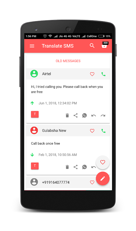 वापरकर्त्याने प्राप्त झालेल्या कोणत्याही नवीन प्राप्त केलेल्या एसएमएसचे भाषांतर देखील करू शकता आणि