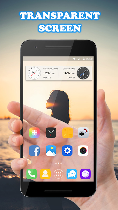 पारदर्शी स्क्रीन App आप अपने फोन के माध्यम से देखते हैं, दृश्यों का आनंद लें या जब आप हमेशा की तरह अपने फोन का उपयोग कर रहे हैं सड़क से देखने के लिए अनुमति देता है। जैसे कि यह आप एक जादू पारदर्शी वॉलपेपर देता है, जैसे कि आप हाथ में एक पारदर्शी फोन है।