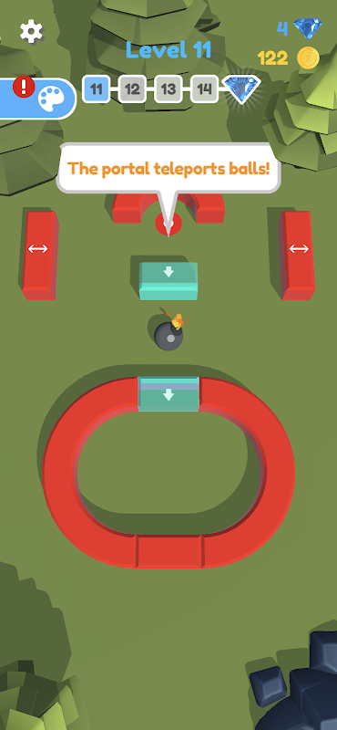 गेंदों को भागने से रोकने के लिए बाधाओं को घुमाएँ और खिसकाएँ। फिर गेंदों को छोड़ने के लिए GO! दबाएँ।