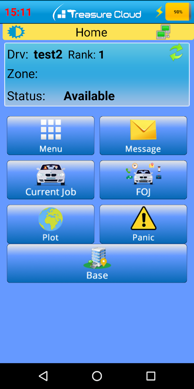 ट्रेजर क्लाउड ड्राइवर ऐप कैब ट्रेज़र डिस्पैच सिस्टम के साथ संचालित होता है।