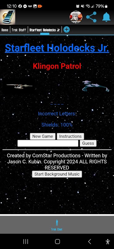 **Trek Browser** by ComStar Productions is your ultimate Star Trek-themed internet browser for Android. Immerse yourself in a galaxy of adventure with features like TrekTV for your favorite Star Trek episodes, Starfleet Holodecks Jr for interactive and entertaining experiences, and a vibrant chat room for connecting with fellow Trekkies. Embark on a browsing journey that's out of this world—engage with Trek Browser and boldly go where no browser has gone before!