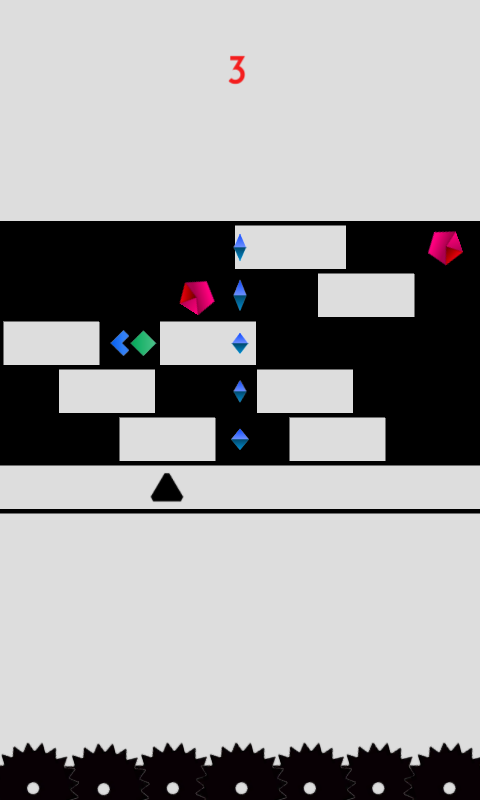 Tap to jump with the black triangle through white gaps. Protect your black triangle from the spike wheels. Use powerups to jump higher and beat record after record. Keep your triangle alive as long as possible.