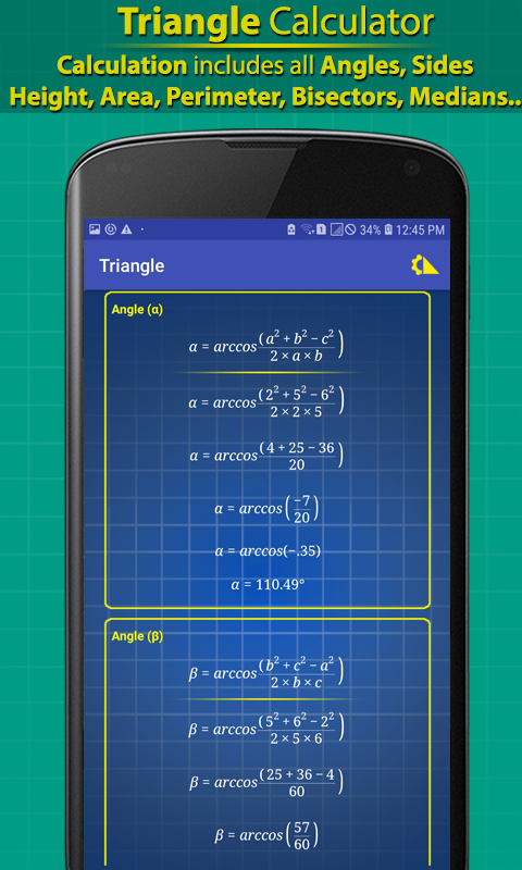 त्रिभुज कैलकुलेटर प्रो अब एप्लिकेशन डाउनलोड का उपयोग करने के लिए नि: शुल्क है!
