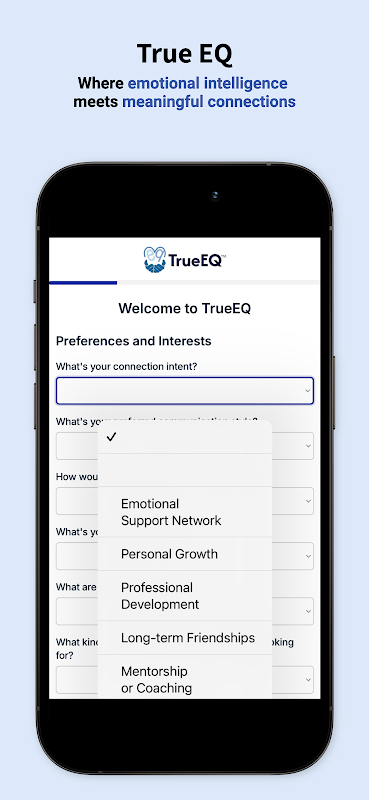 1. ईक्यू टेस्ट लें - हमारी अनूठी ईक्यू टेस्ट देकर अपनी यात्रा शुरू करें, जो आपकी भावनात्मक शक्तियों और विकास के क्षेत्रों को समझने में आपकी मदद करने के लिए डिज़ाइन किया गया है। यह प्रोफ़ाइल TrueEQ पर आपका अद्वितीय EQ हस्ताक्षर बन जाती है।