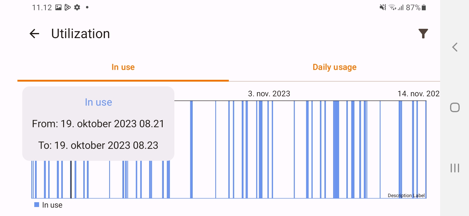 ज़ूम करने योग्य ग्राफ़ पर डेटा ब्राउज़ करें। चलते-चलते घटनाओं की पहचान करें और घटना स्थल देखें। विज़न सब्सक्रिप्शन के लिए, यूटिलाइज़ेशन डेटा अब आपके ऐप पर भी उपलब्ध है। किसी टाइमलाइन पर अपने एसेट के चलने के घंटे ब्राउज़ करें या मिनटों में दैनिक उपयोग देखें। साथ ही, यह देखने के लिए कि आपका डेटा कब और कहाँ ट्रैक किया गया था - और इसे किसने ट्रिगर किया, यह देखने के लिए एक पूर्ण ट्रांसमिशन सूची देखें।