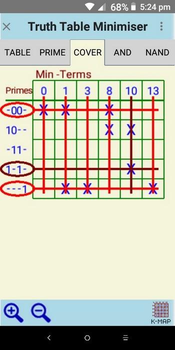 केमप्स या क्विन-मैकलुस्की का उपयोग करके बूलियन ट्रुथ टेबल को छोटा करने के लिए आवेदन