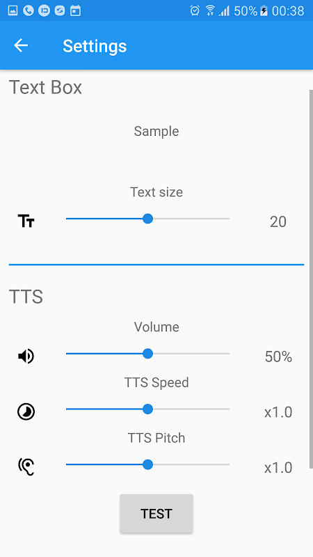 ध्यान दें! ऐप के काम करने के लिए आपके डिवाइस पर टेक्स्ट टू स्पीच इंजन इंस्टॉल होना चाहिए। यदि आपके पास टीटीएस इंजन नहीं है, तो आप गूगल प्ले पर आसानी से इसे ढूंढ और डाउनलोड कर सकते हैं। कुछ भाषाएं केवल विशिष्ट इंजनों के साथ काम करेंगी।