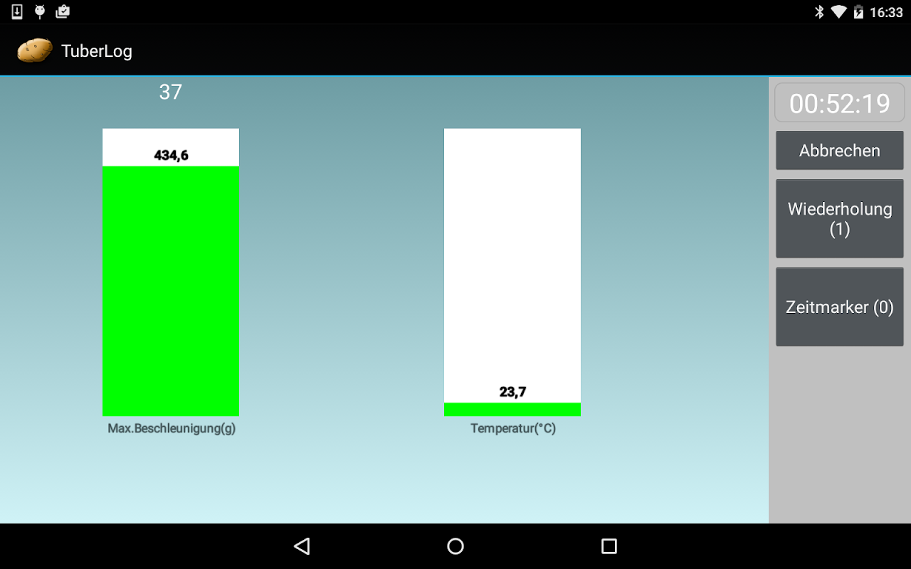 एप्लिकेशन प्रदर्शन और इलेक्ट्रॉनिक आलू TuberLog साथ माप का मूल्यांकन है। यह निम्नलिखित कार्यों प्रदान करता है: