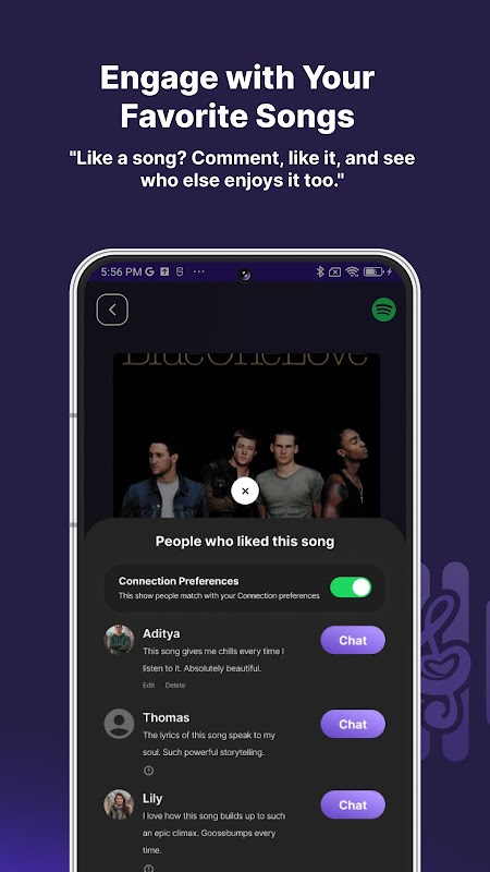 ट्यूनकनेक्ट एक विशिष्ट सामाजिक संगीत ऐप है जो संगीत के प्रति आपके प्रेम और जुड़ाव को एक साथ लाता है। Spotify सहित कई स्ट्रीमिंग प्लेटफ़ॉर्म से अपने पसंदीदा गाने खोजें और उनका आनंद लें, साथ ही उन अन्य लोगों के साथ जुड़ें जो आपके संगीत स्वाद को साझा करते हैं। समृद्ध मेटाडेटा वाले ट्रैक एक्सप्लोर करें, जैसे कलाकार के नाम, एल्बम शीर्षक और बहुत कुछ। गानों को पसंद करके और उन पर टिप्पणी करके समुदाय के साथ जुड़ें, और यदि आपको और किसी अन्य उपयोगकर्ता दोनों को एक ही ट्रैक पसंद है, तो आप तुरंत चैट कर सकते हैं और ऐप के माध्यम से जुड़ सकते हैं। ट्यूनकनेक्ट संगीत की खोज को सामाजिक संपर्क के साथ सहजता से जोड़ता है, जिससे संगीत प्रेमियों के लिए एक साथ संगीत साझा करने और अनुभव करने के लिए एक गतिशील स्थान बनता है।