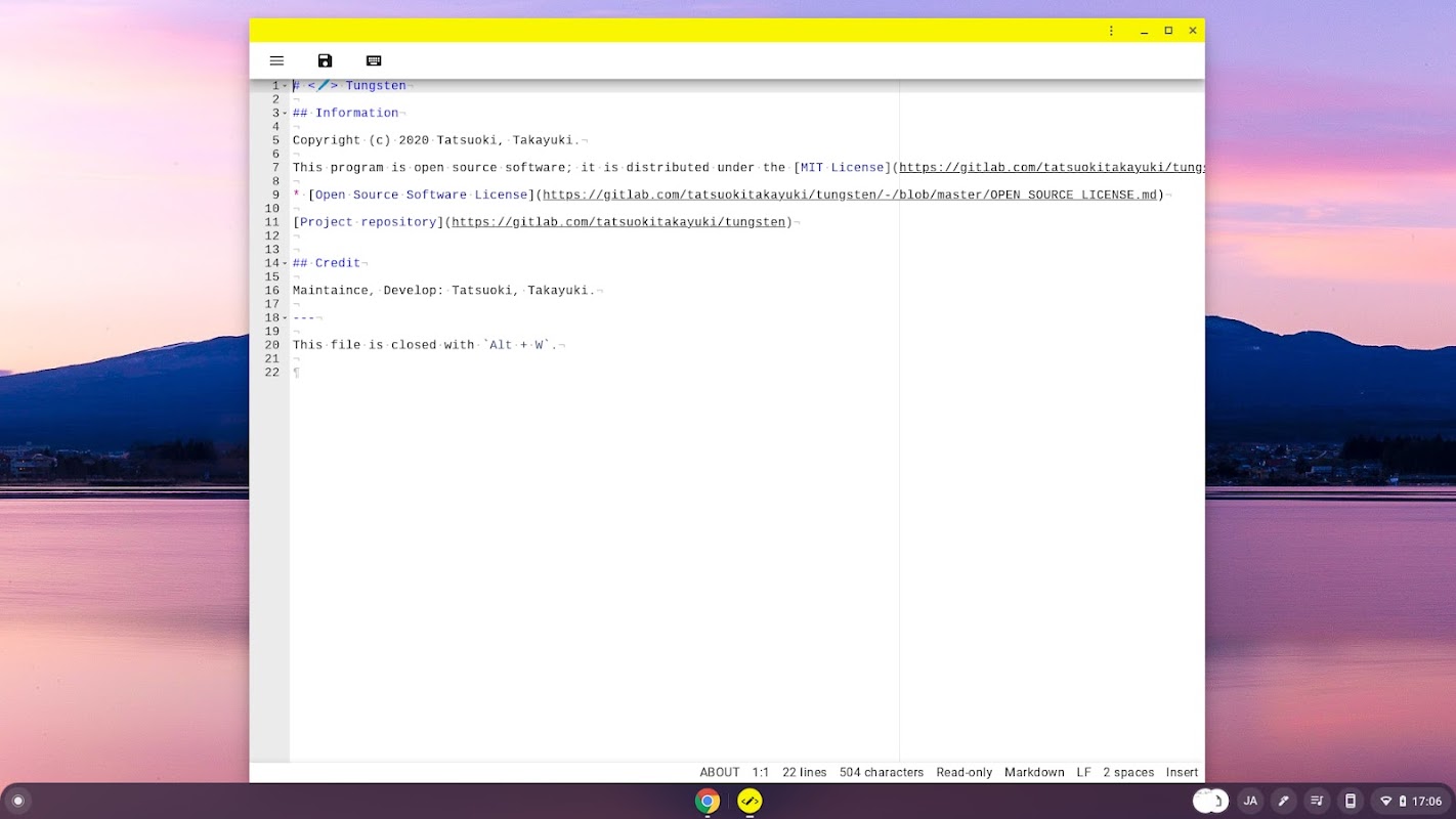 हम टंगस्टन टेक्स्ट एडिटर मुख्य रूप से क्रोमबुक (या क्रोमियम ओएस और उसके आधारित ओएस) उपयोगकर्ताओं के लिए विकसित कर रहे हैं।