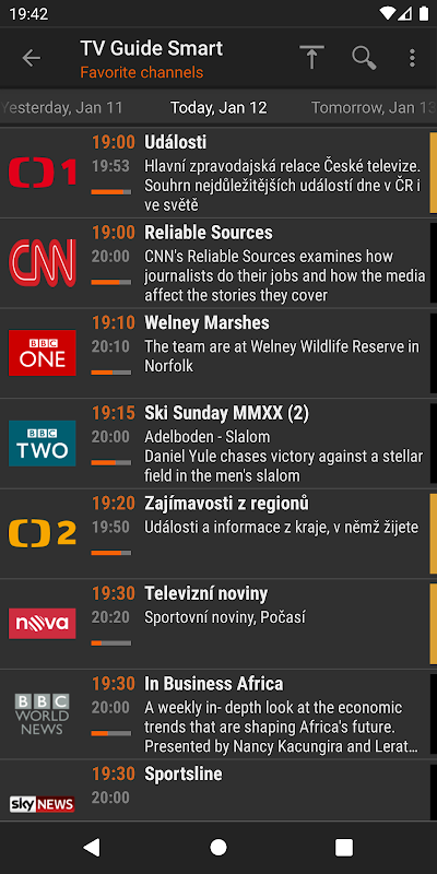 - स्वचालित ऑफ़लाइन मोड के साथ पसंदीदा चैनलों की सूची