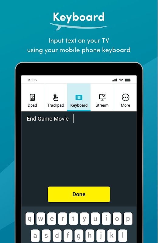 - कीबोर्ड: अपने मोबाइल फोन के कीबोर्ड का उपयोग करके अपने टीवी पर इनपुट टेक्स्ट