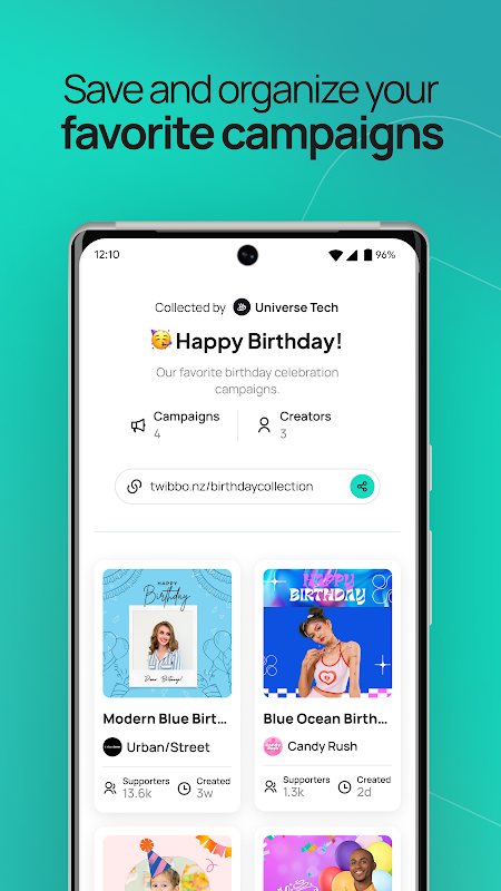 - 🌟 अभियान निर्माण: अपना अभियान शुरू करें, दूसरों को इसका समर्थन करने के लिए आमंत्रित करें, और उन्हें अपना स्वयं का कस्टम ट्विब्बन रखने दें।