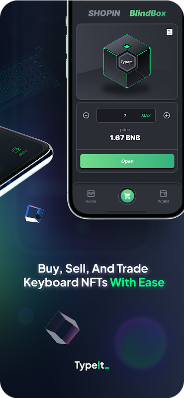 टाइप इट के साथ, आप टाइप करते समय पुरस्कार अर्जित कर सकते हैं, और बीएनबी में गैस शुल्क और ब्लाइंड बॉक्स का भुगतान किया जा सकता है। ऐप को टाइपआईट के साथ भी एकीकृत किया गया है! मार्केटप्लेस, जहां आप अलग-अलग दुर्लभताओं और विशेषताओं के साथ अलग-अलग कीबोर्ड एनएफटी द्वारा प्रस्तुत अद्वितीय डिजिटल संग्रहणता खरीद, बेच और व्यापार कर सकते हैं।