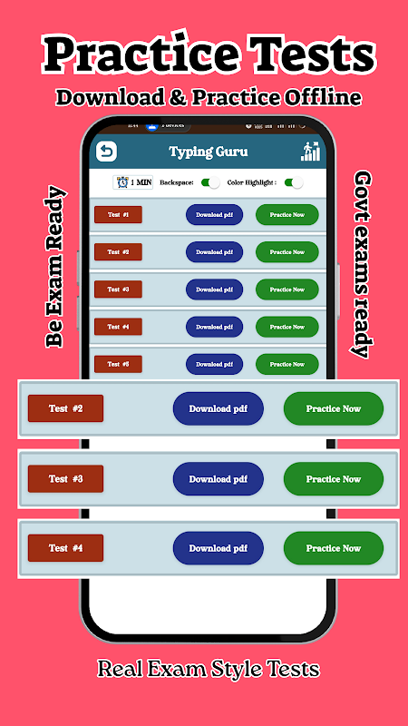 स्तर-वार टाइपिंग टेस्ट: जैसे-जैसे आप आगे बढ़ते हैं, नए स्तरों को अनलॉक करें, बिल्कुल किसी टाइपिंग गेम की तरह। बेहतर सटीकता के साथ उच्च WPM प्राप्त करें।