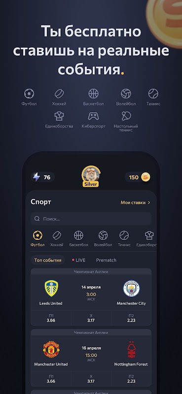 फुटबॉल, हॉकी, मुक्केबाजी आदि की दुनिया से कोई भी खेल प्रतियोगिता चुनें, मुफ़्त में दांव लगाएं और सिक्के जीतें!