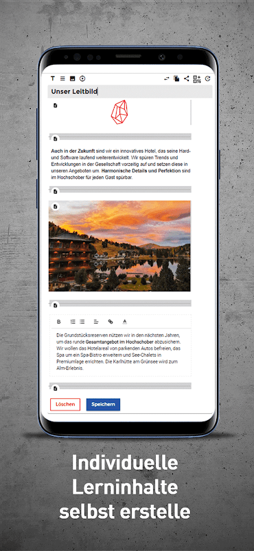 सहज ज्ञान युक्त सूक्ष्म-शिक्षण दृष्टिकोण के लिए धन्यवाद, हर कोई वांछित गति से सीख सकता है। लर्निंग कार्ड सिद्धांत के अनुसार सामग्री को छोटे वर्गों में विभाजित किया गया है। इस तरह, ज्ञान का अधिग्रहण टीम के सदस्यों के रोजमर्रा के काम में आसानी से, कुशलतापूर्वक, प्रभावी और स्थायी रूप से एकीकृत होता है।