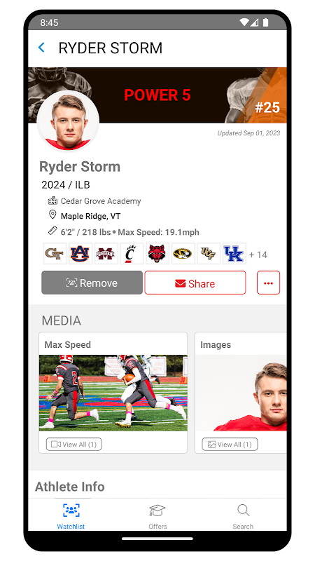 एथलीट का मीडिया, सूचना, मेट्रिक्स और ऑफ़र देखें।