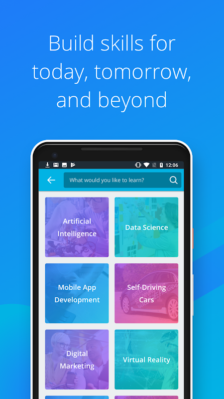Master in-demand skills in today’s hottest fields, through learning programs built with the world’s most innovative companies. Join millions of lifelong learners across the globe who are empowering themselves through education. Use the Udacity app to fully manage your personalized learning experience.