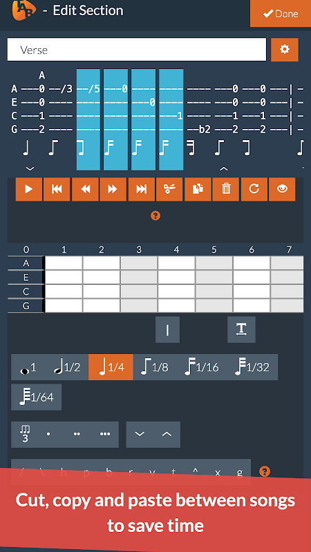 - अलग-अलग गानों के बीच भी टैब के सेक्शन को काटें, कॉपी करें और पेस्ट करें