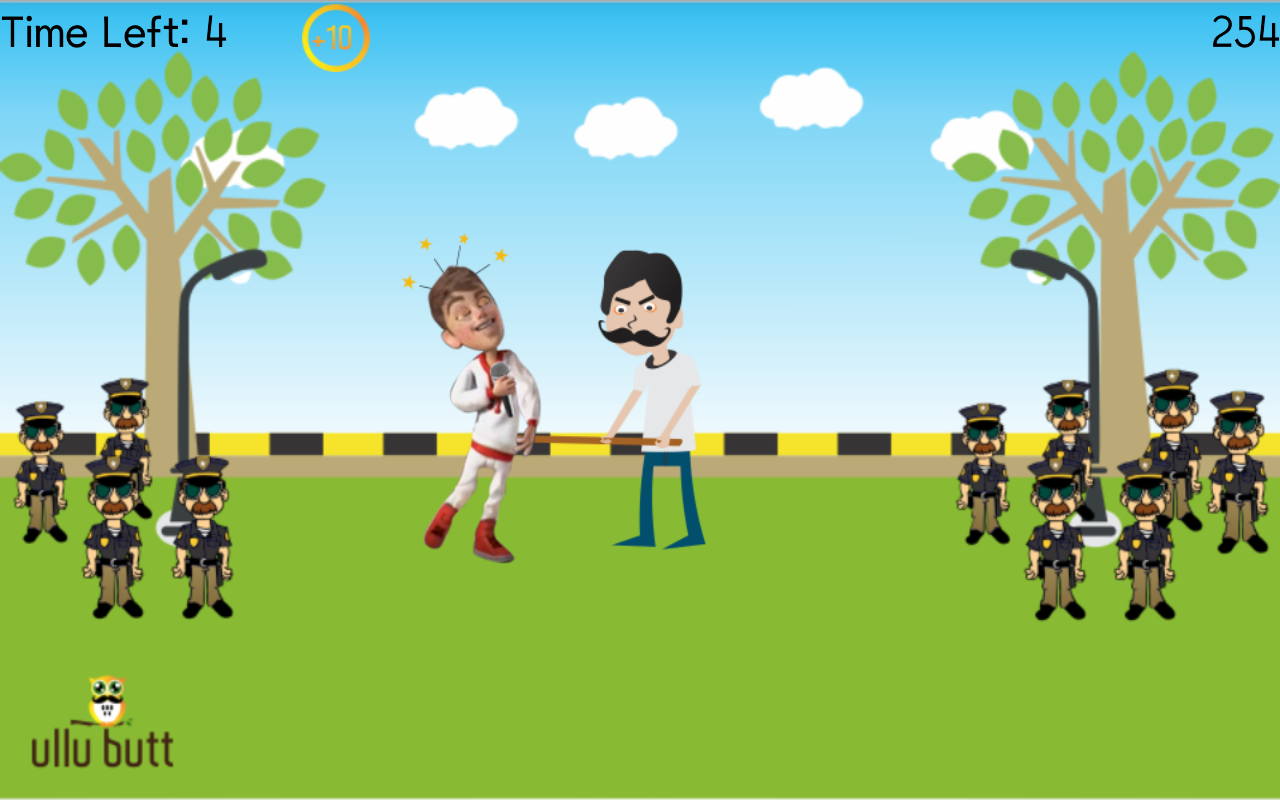 Well, ullu butt is an easy to use distinct app that allows you to unleash the hidden gullu butt within you and have extended fun. Tap ullu butt and let the car hit with his stick to score your points. Don't miss the shots as you will be given only 5 shots to get your best score.