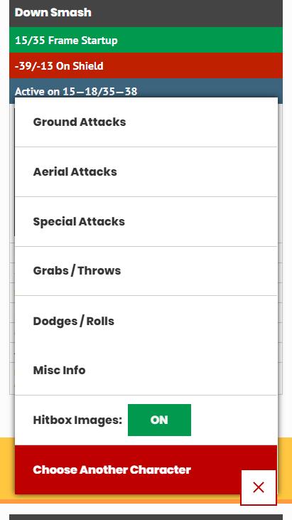 स्टार्टअप, सक्रिय, ऑन शील्ड लाभ/नुकसान, आउट ऑफ शील्ड विकल्प, और बहुत कुछ! अब हिटबॉक्स छवियाँ भी शामिल हैं! वेब संस्करण के लिए https://ultimateframedata.com पर जाएं (IOS उपयोगकर्ता होम स्क्रीन पर जोड़ सकते हैं)।