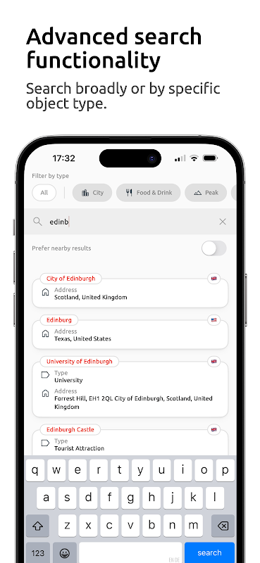 विशिष्ट स्थानों या श्रेणियों की खोज करें, दूरी या प्रकार के अनुसार फ़िल्टर का उपयोग करें, और तुरंत वह पाएँ जिसकी आपको आवश्यकता है।