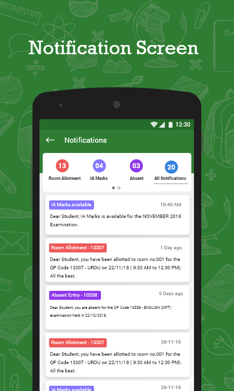 छात्र को समय-समय पर सूचनाएं मिलेंगी जैसे प्रवेश पुष्टि,