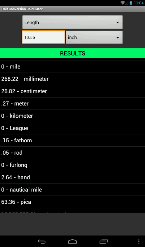 Unit Conversion Calculator provides quick and accurate unit / metric conversion in an extremely easy to use and intuitive UI.