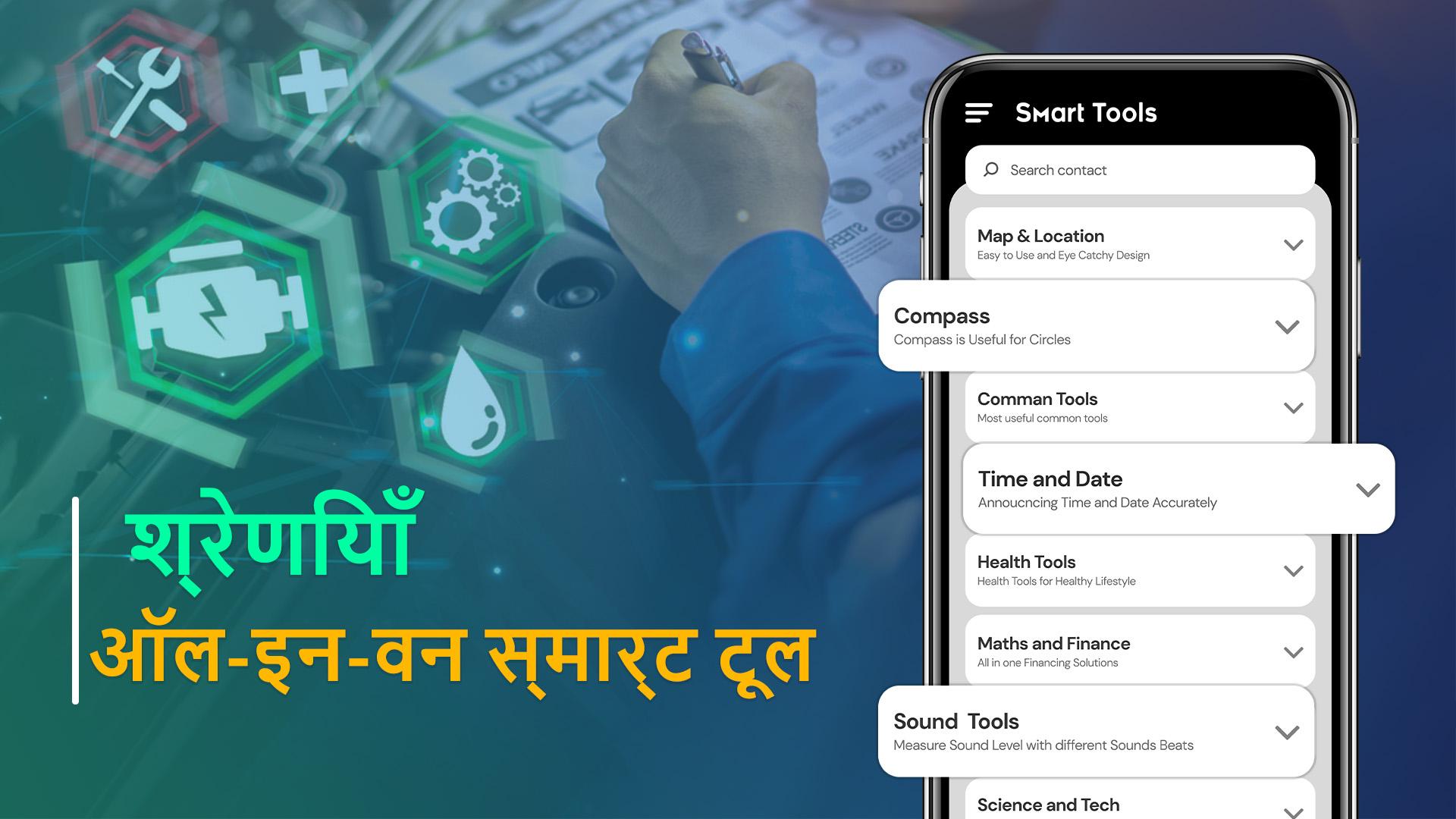 कंपास, बबल लेवल, टेक्स्ट टू स्पीच और रूलर के साथ सभी एक स्मार्ट टूल ऐप में