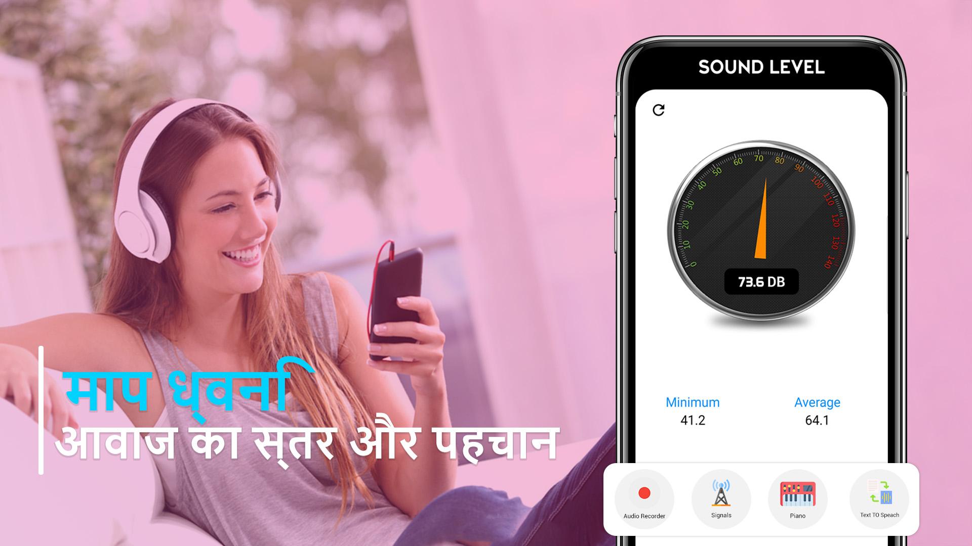 ध्वनि स्तर: ऑडियो मापन के लिए इस स्मार्ट टूल के साथ ध्वनि की तीव्रता या अपने आस-पास के स्तर की जांच करें।
