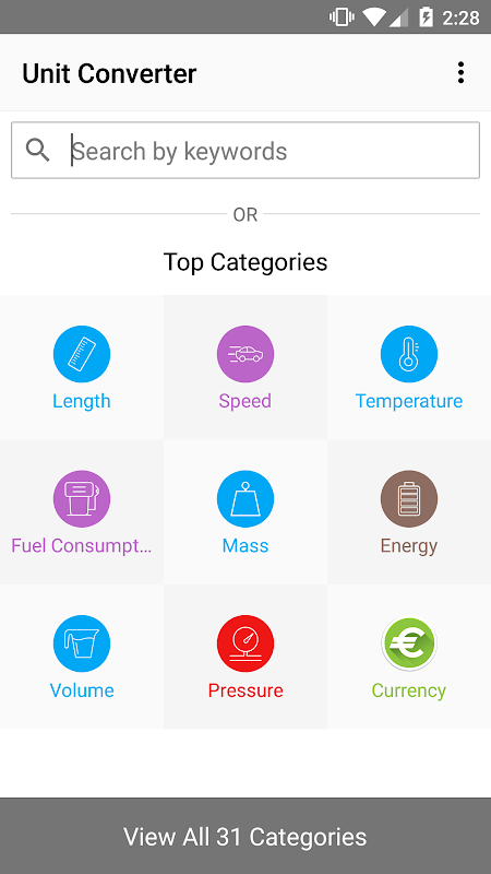 मीट्रिक ऐसे किलोमीटर से मील के लिए लंबाई के रूप किलोग्राम से पाउंड करने किमी / लीटर से मील / गैलियन, तापमान सेल्सियस से फेरनहाइट रूपांतरण, वजन, ईंधन की खपत को याद नहीं कर सकते? यूनिट कनवर्टर 31 से अधिक विभिन्न श्रेणियों में (मैट्रिक, शाही, एसआई इकाइयों सहित) 600 से अधिक अन्य स्वतंत्र रूप से परिवर्तित करने योग्य इकाइयों के साथ आता है।